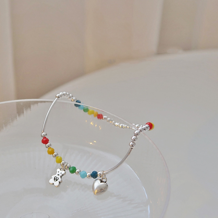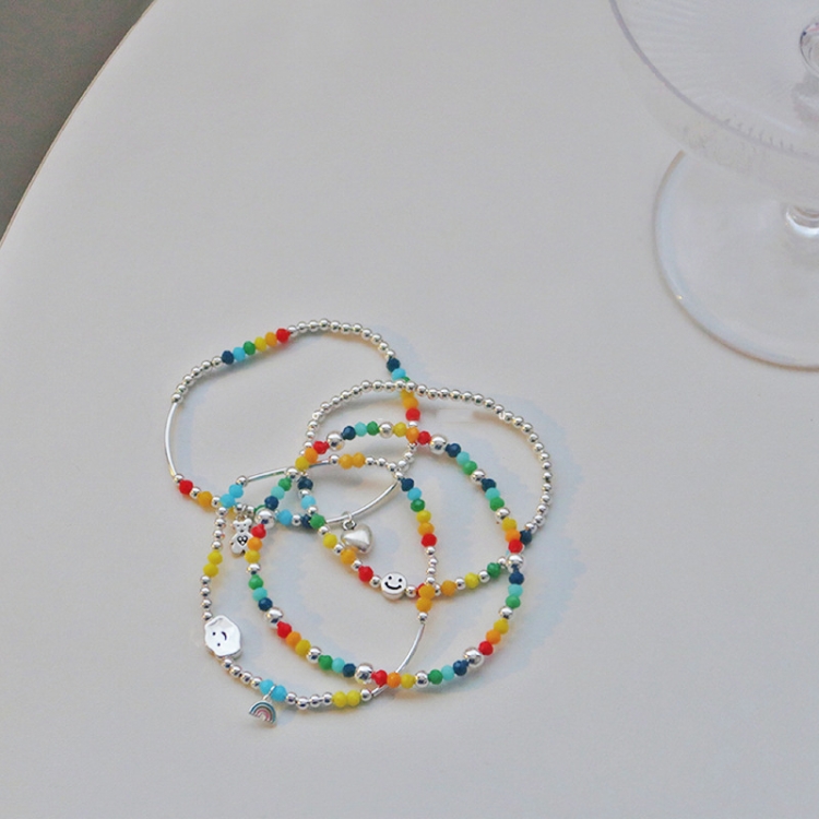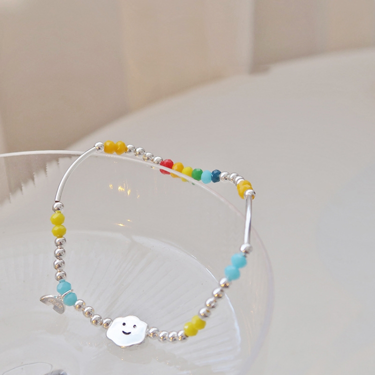 925 Silver Plated Rainbow Smile Beaded Bracelet Ladies Jewelry