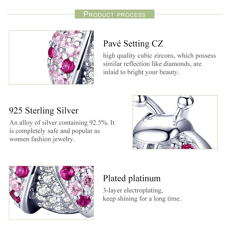 925 Sterling Silver Ladybug Pink Cubic Zircon Insect Charms Beads For Bracelets DIY