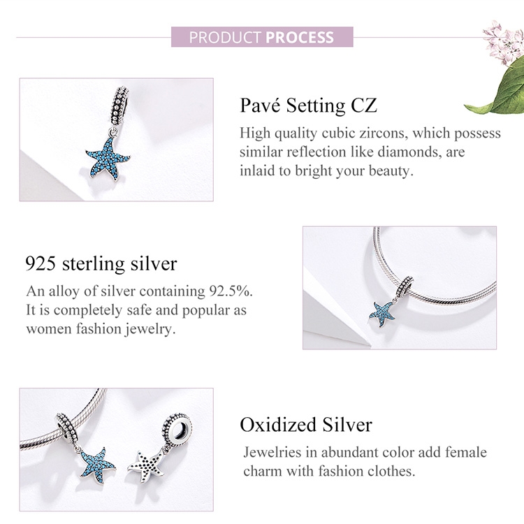 925 Sterling Silver Starfish Pendant Charm Women DIY Bracelet Accessories