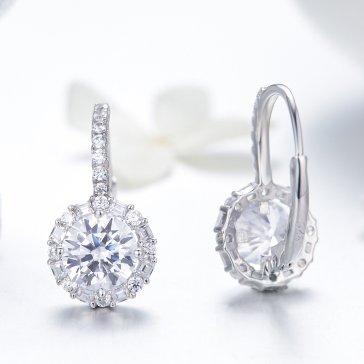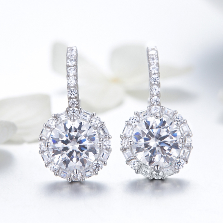 925 Sterling Silver Zircon Round Drop Earrings