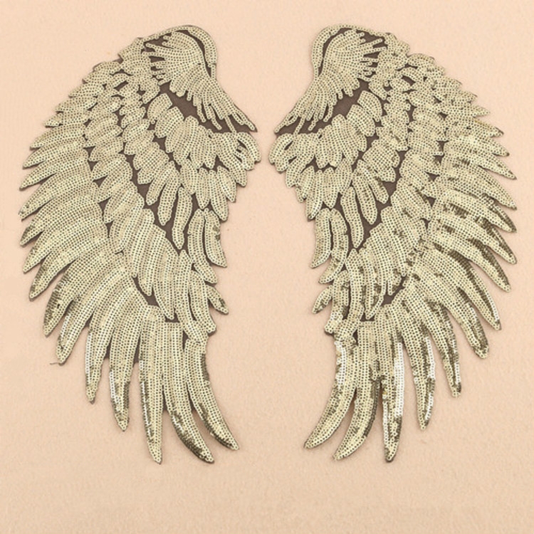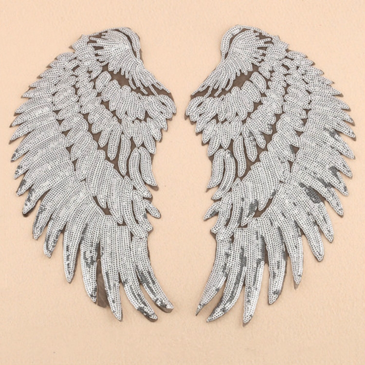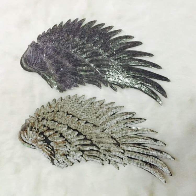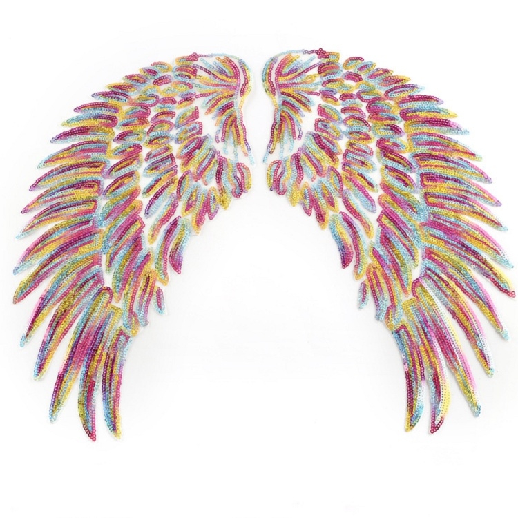 A Pair Sequin Feather Wing Shape Clothing Patch Sticker DIY Clothing Accessories