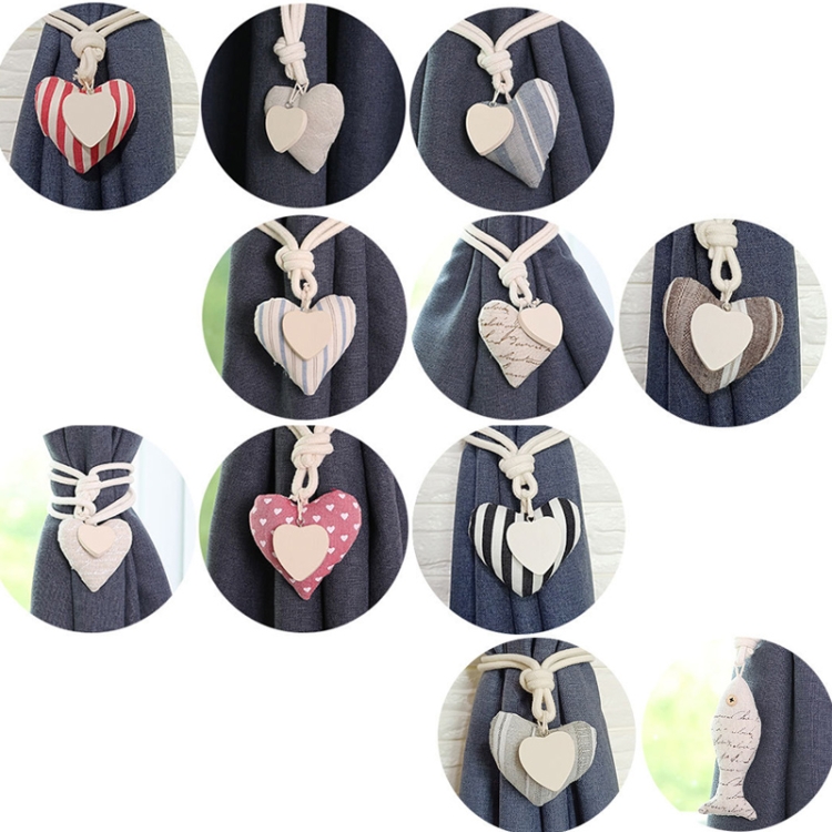 A005 Cotton And Linen Curtain Magnet Bandage Free Perforated Tassel Curtain Buckle, Beige, Red Stripes, Blue Rough, Blue Fine Lines, Coffee Stripes, Vertical Stripes, Coffee Letters, Beige Letters, Pink, Fish, Grey Stripes