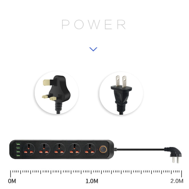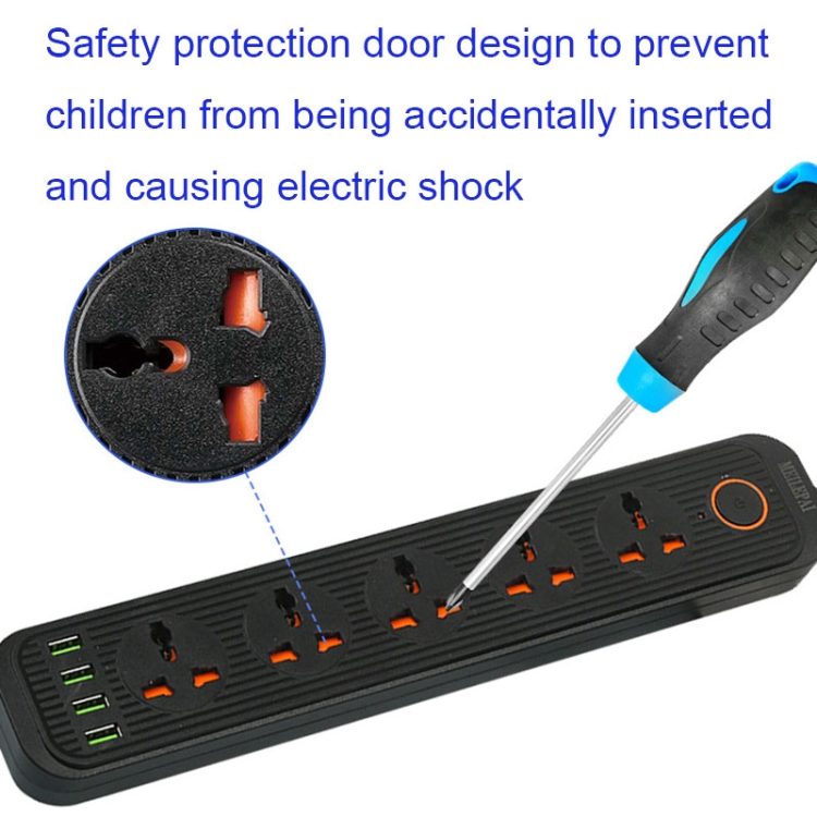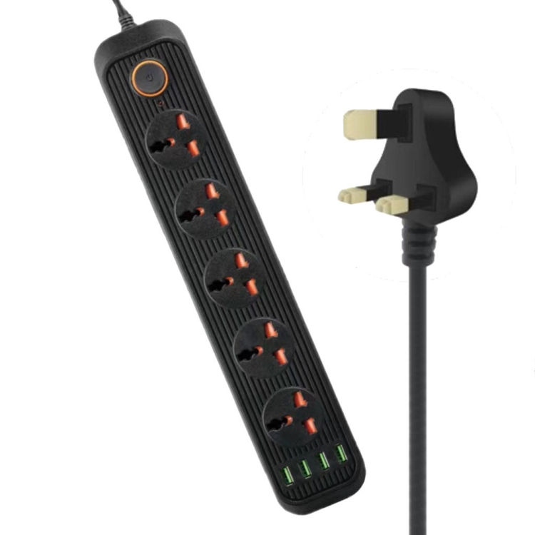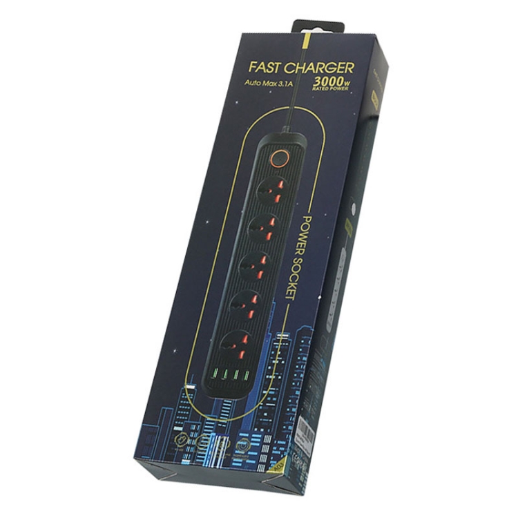 A03 2m 3000W 5 Plugs + 4-USB Ports Multifunctional Flame-retardant Socket with Switch