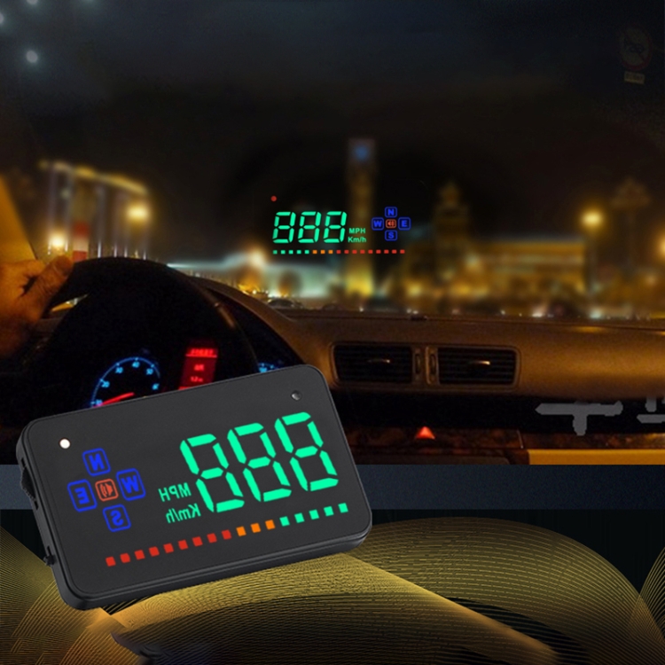 A2 HUD 3.5 inch HD GPS Car Head Up Display, Speed & Over Speed Alarm, Compass, Freely Switch Between Kilometers and Miles(Black)