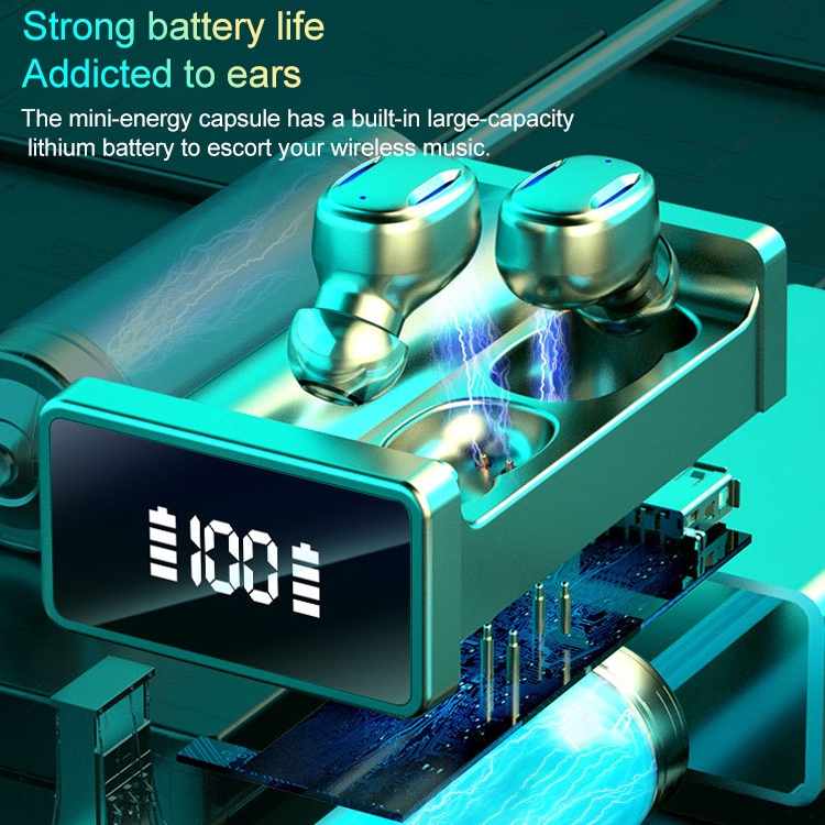 6. The middle LED digital display shows the battery power of the charging box, and the left and right LED breathing lights respectively display the battery power of the left and right earphones.