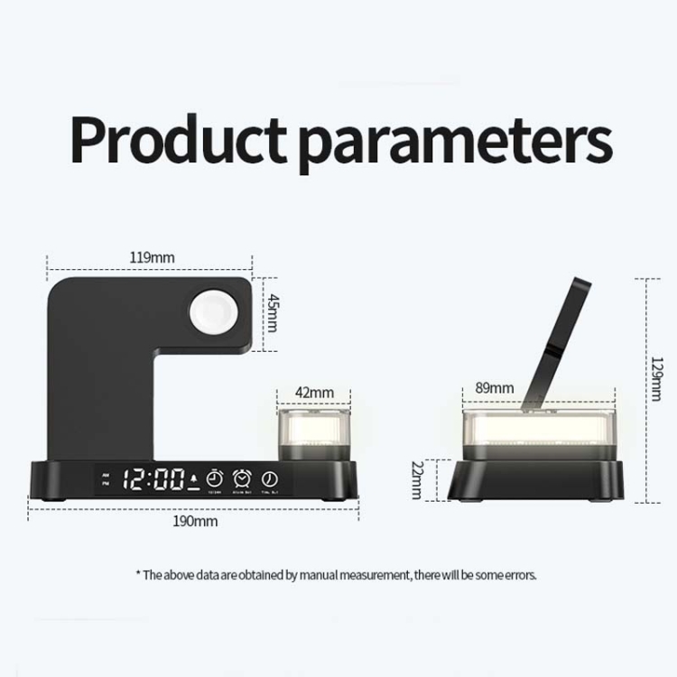 1. Alarm clock/clock/wireless charging/night light, multi-function