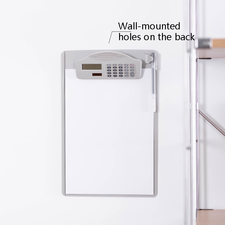 5. Features: wall-mounted holes on the back, convenient for hanging and storage, with pen holder and ruler functions, easy to use, with solar-powered calculator plywood, large and easy to clamp