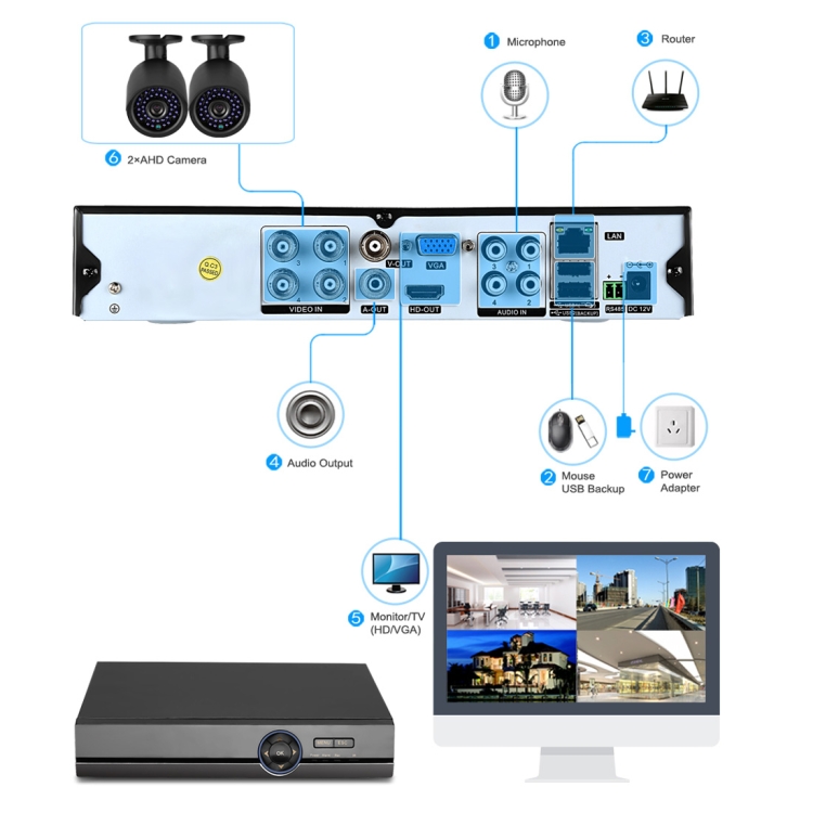 16. Multi-Input (ONVIF 2.8) Analogue: 4*1080N 4*960H, Analogue + Network; HD: 2*1080N(AHD-NH)+2*1080P(network), Network: 4*1080P.