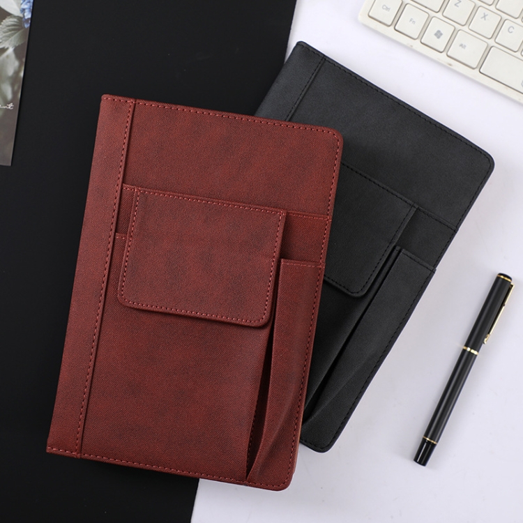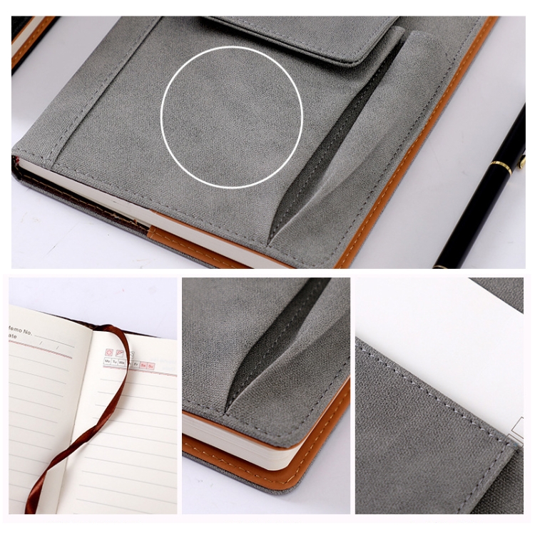 A5 Imitation Fabric PU Leather Notebook Notepad Multi-pocket Journal Planner, Blue, Black, Grey
