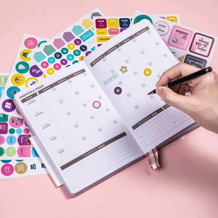 4. Diverse page designs including weekly planning pages, monthly planning pages, main objectives for the week, priority tasks for the week, weekly feedback, habit tracking, and other subsections to help you develop good habits.