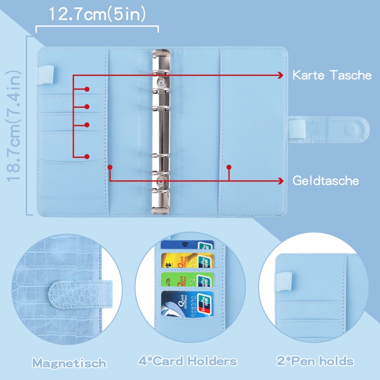 A6 Crocodile Pattern PU Leather Loose-Leaf Binder Budget Notebook Cash Envelope Organizer