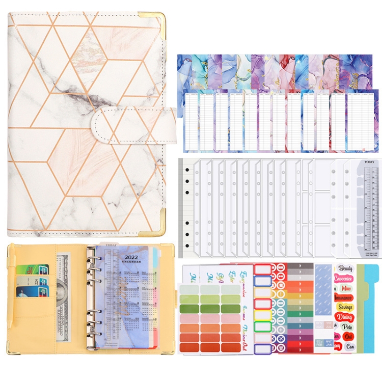 -Deluxe model: 40 blank inserts x 1 + English stickers x 3 + transparent ruler x 1 + 12-color budget card x 12 + multi-function stickers x 3 + index page x 5 + sticky notes x 2 + zipper pocket x 2