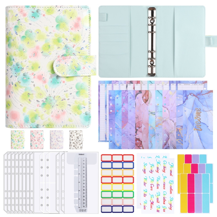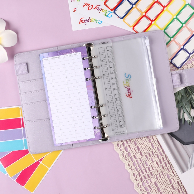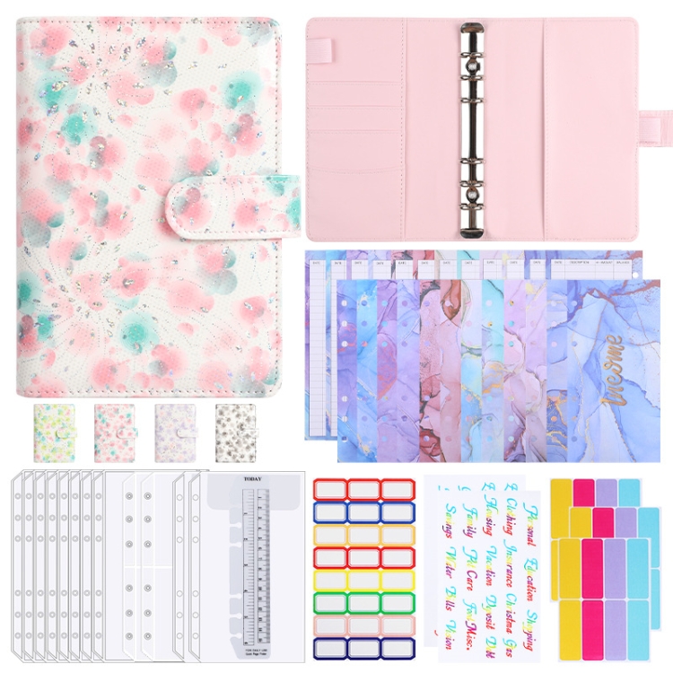 A6 PU Leather 6-hole Cash Budget Book Small Floral Pattern Binder Hand Ledger Notebook