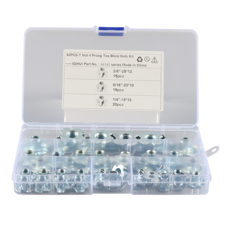 A6342 50 PCS T-Nut 4 Pronged Tee Blind Nuts Assortment Kit