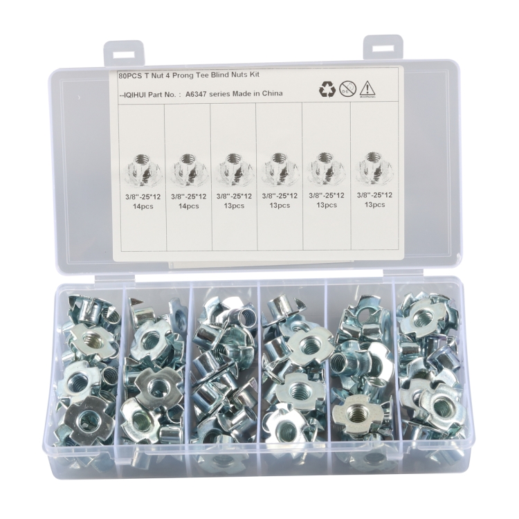 A6347 80 PCS T-Nut 4 Pronged Tee Blind Nuts Assortment Kit