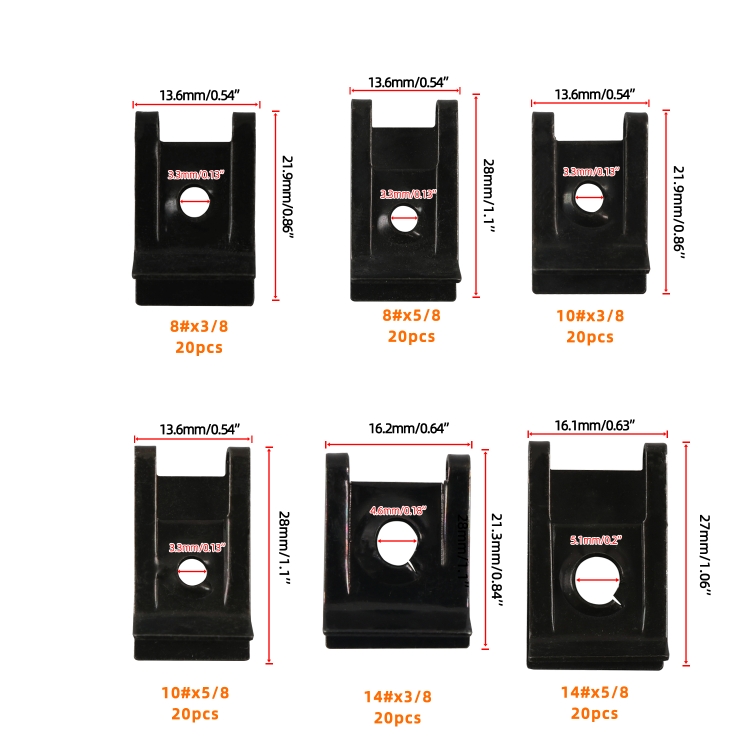 A7551 120pcs / Set Carbon Black Tension Nut U-shaped Fixed Splint Nut