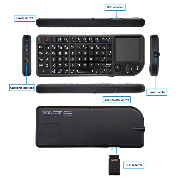 9. A keyboard with multimedia function keys and game control keys, and a built-in smart touchpad, which can be switched between horizontal and vertical directions freely.
