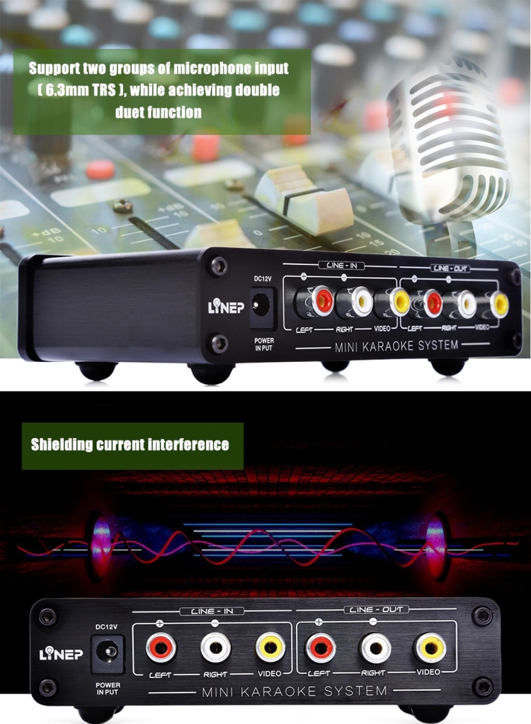 5. Support two sets of microphone input (6.3mm TRS), enable the simultaneous double singing function.