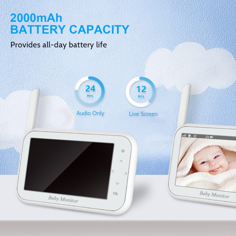 1. The sounds and images of the baby are transmitted to the display in real time. Adults can monitor the baby’s condition in real time. When the intercom button on the display is pressed, they can send language to the baby.