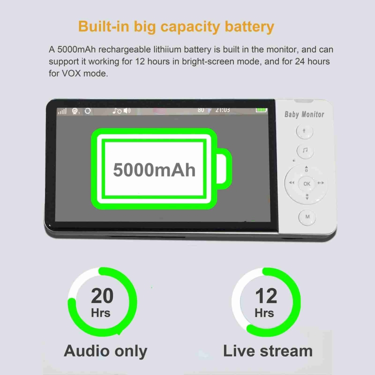 ABM700 5 inch Wireless Video Night Vision Baby Monitor Security Camera
