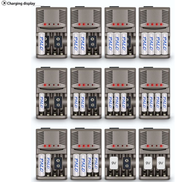 1. 4-slot independent charging, which can charge AAA and AA batteries at the same time or at random, and can charge two 9V Ni-MH batteries.