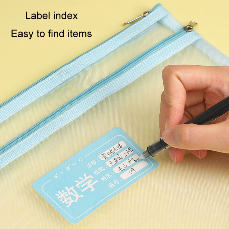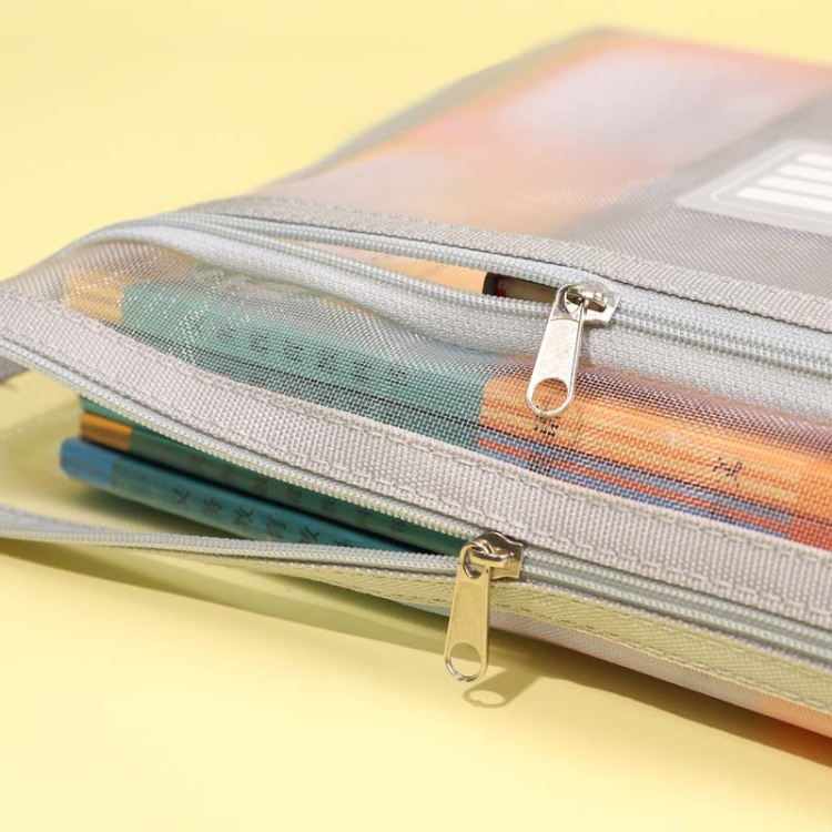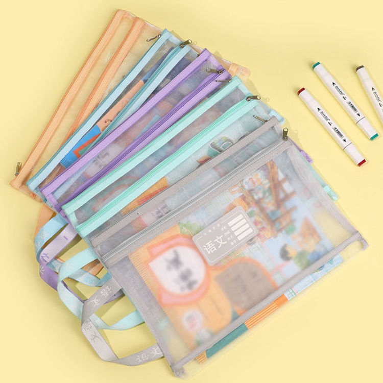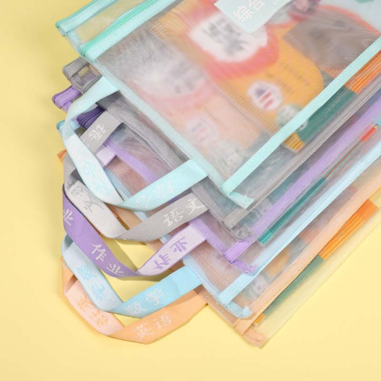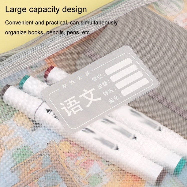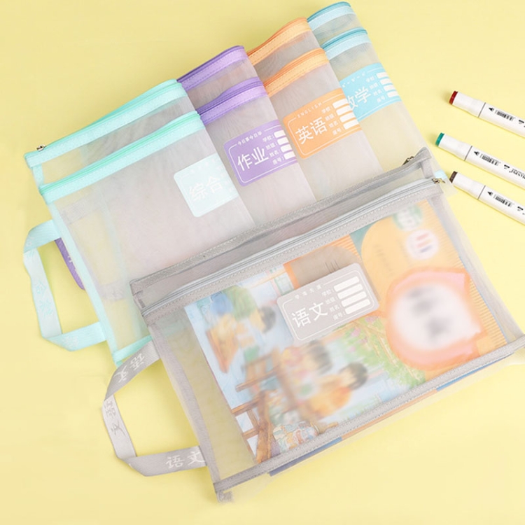Academic Subjects Classification File Pouch Zipper Transparent Mesh Storage Bag