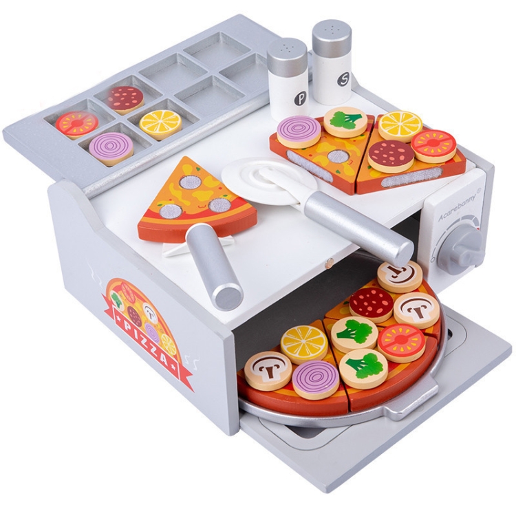 Acarebanny Wooden Simulation Barbecue Pizza Oven Children Pretend Play Toy