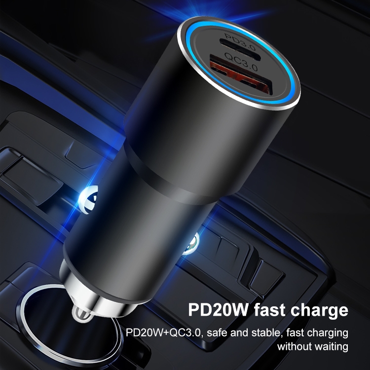 ACC-198 PD 20W + QC3.0 38W Dual Ports Metal Car Charger