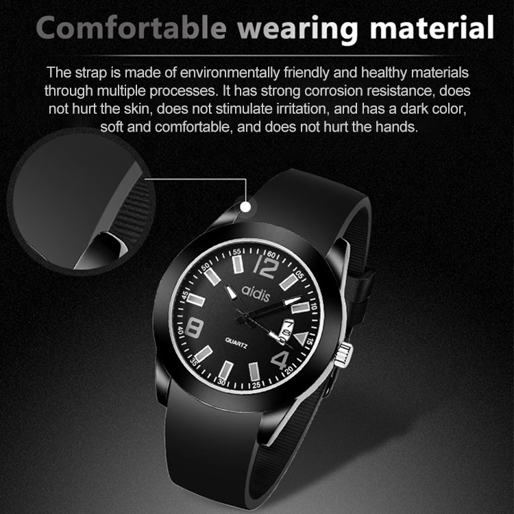 addies MY-1601 Regular Version Silicone Watchstrap Quartz Watch, Support Calendar