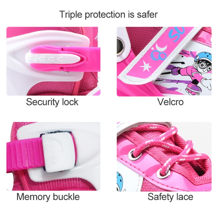 Adjustable Full Flash Children Double Row Four-wheel Roller Skates Skating Shoes Set, Size : S