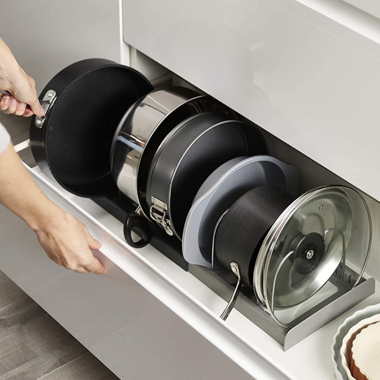 Adjustable Kitchen Shelf Kitchenware Cutting Board Pot Cover Telescopic Shelf