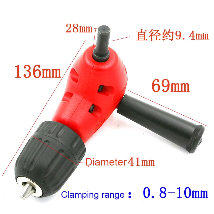Adjustable Switching Head Right Angle Drill Gripping with Triangular Handle, Circular Handle and Hex Shank