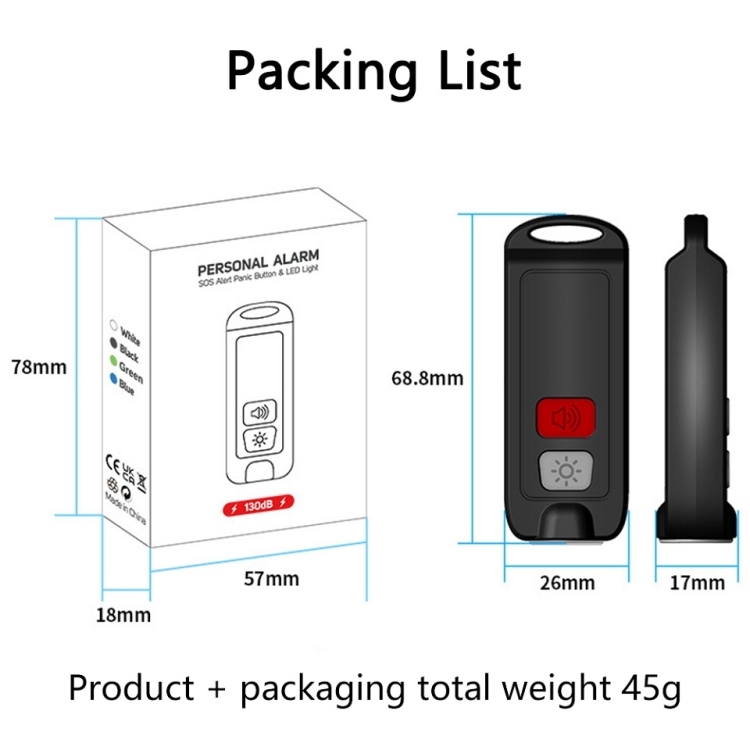 1. Alarm sound decibel: 130dB