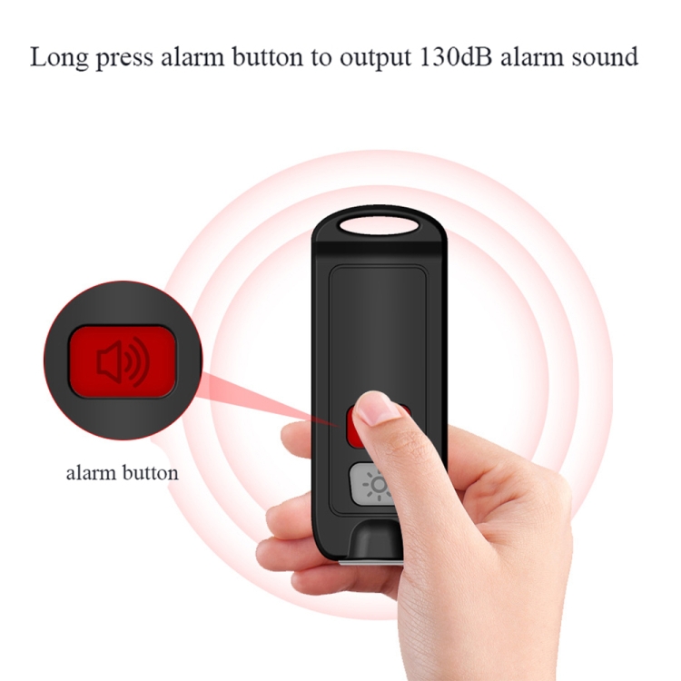 2. Alarm function: double-click the SOS ALARM+ main light flashes, long press (1.5s) to end the alarm.