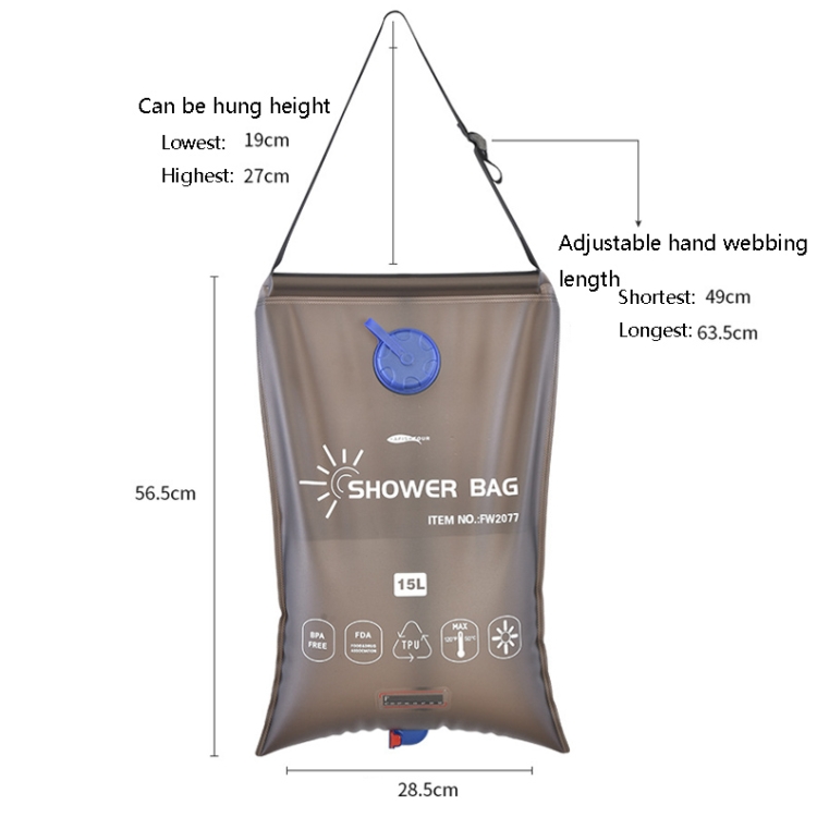 AFISHTOUR FW2077 15L Solar Shower Bag Outdoor Sun Bathing Bag
