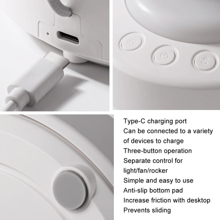 5. With automatic head shaking function, short press the head shaking button to start/pause the head shaking function under power on state, and the head shaking will automatically return to the right position after power off