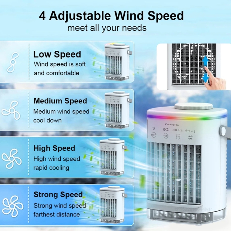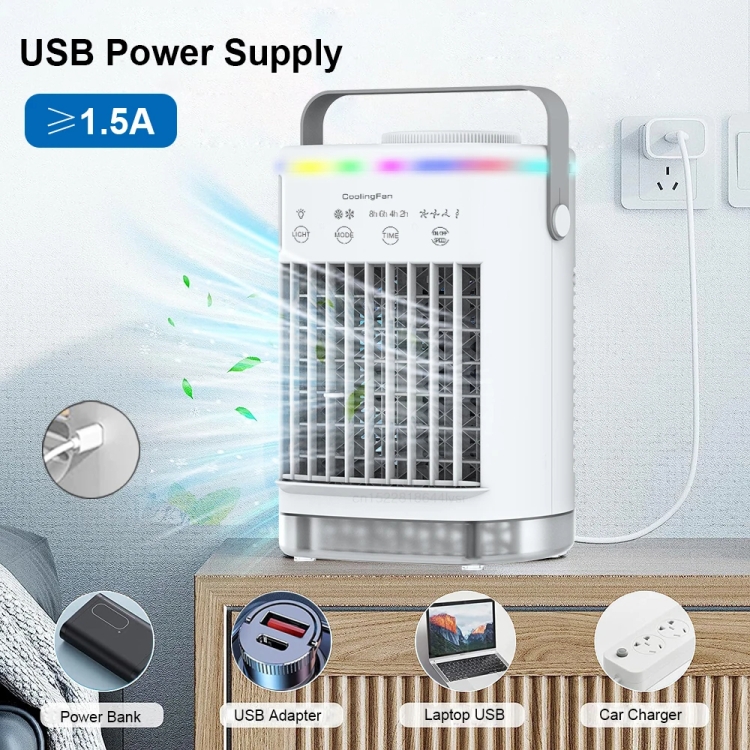 Air Conditioner Water Cooling Fan 4 Speed Adjustable With Timer & 7 Colors Light