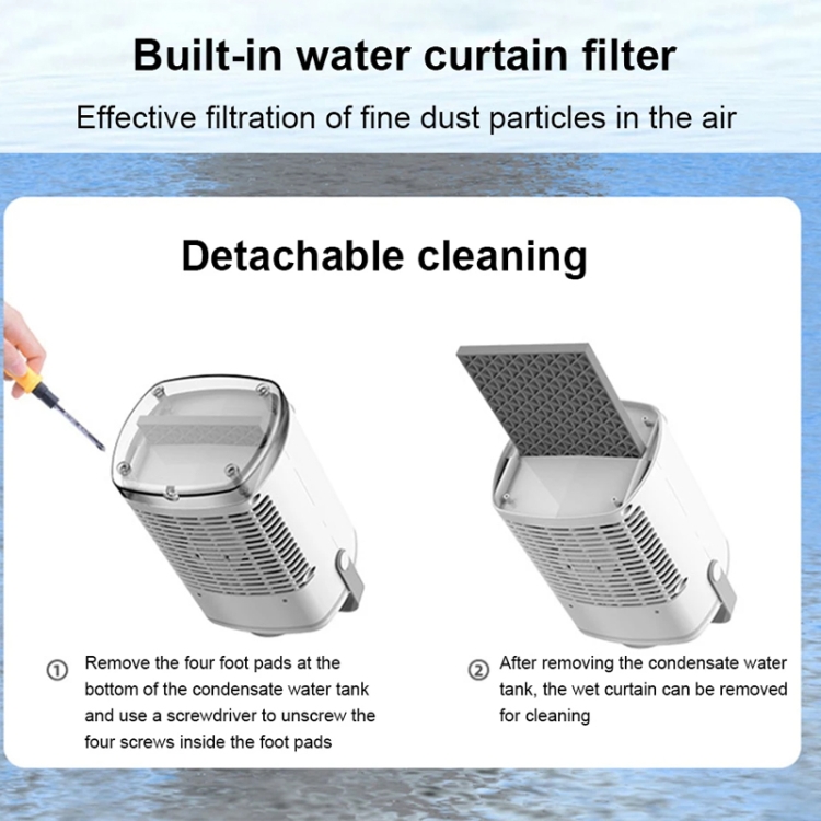 5. 700ML water tank, 4-5 hours of continuous refrigeration, bottom condensation water tank, wet curtain repeated suction and refrigeration without waste;