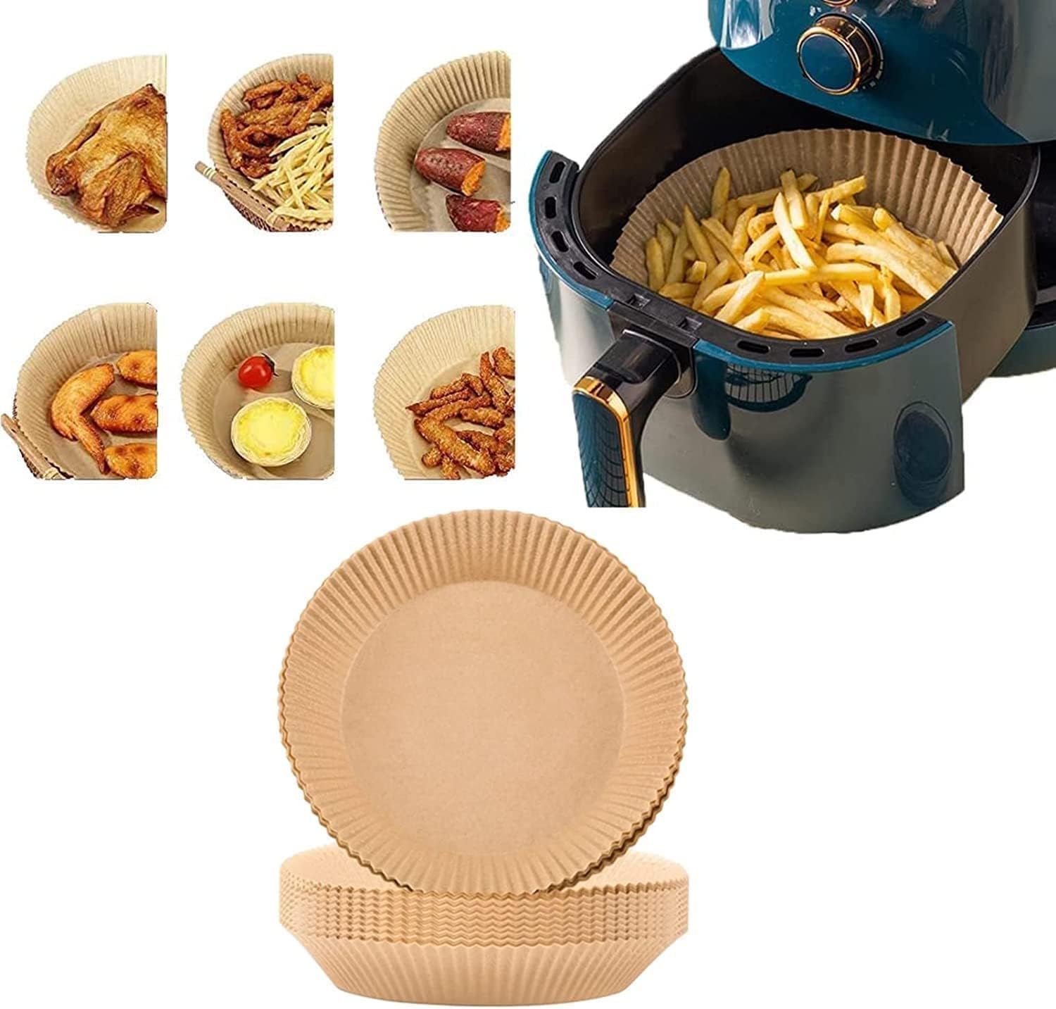 Keep Your Air Fryer Clean: Easy to clean , No greasy mess. These disposable paper liners can effectively keep food residue away from fryer and make it as clean as unused, saving time and effort. These paper liners are must have if you hate cleaning after baking. Air Fryer Disposable Paper Liner: These parchment paper air fryer liners can be applied for serving food, steamer, frying pan, microwave, roasting, frying, air fryer. Suitable for home baking camping, summer party etc. Kitchen Essentials, Multi-function: Parchment paper can be used for cooker, microwave, oven and steamer. It is kitchen essentials, you can use it when baking, frying, roasting. Especially on festival celebration, birthday party, valentines day decor for serving food. Also wonderful for summer party, backyard BBQ and camping etc. Wide Applications: These parchment paper air fryer liners are great for roasting, frying, baking, steamer, frying pan, microwave, air fryer or serving foods. They can be applied to camping, home baking, BBQ, summer party, and so on. Easy To Store And Use: We offer a plastic container for you to store cooking parchment paper, it can avoid some dusts and keep paper clean for next usage. In addition, it shaped with round. You don‘t need to cut, bend, fold or tear. Just place the food inside paper or throw it out after usage. Much cleaner, Much healthier.
