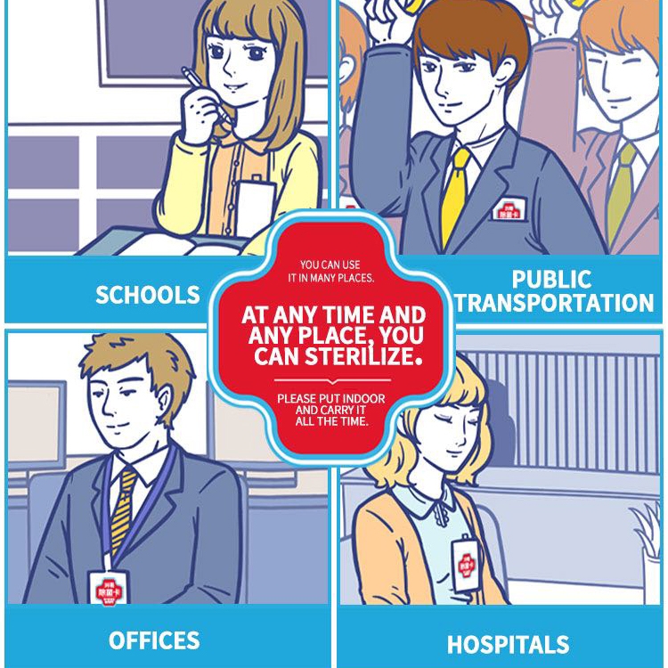 2. Disinfection supplies can be widely used in life. The protection card is very suitable for many public places, such as train stations, subways, airplanes, schools, offices, etc.