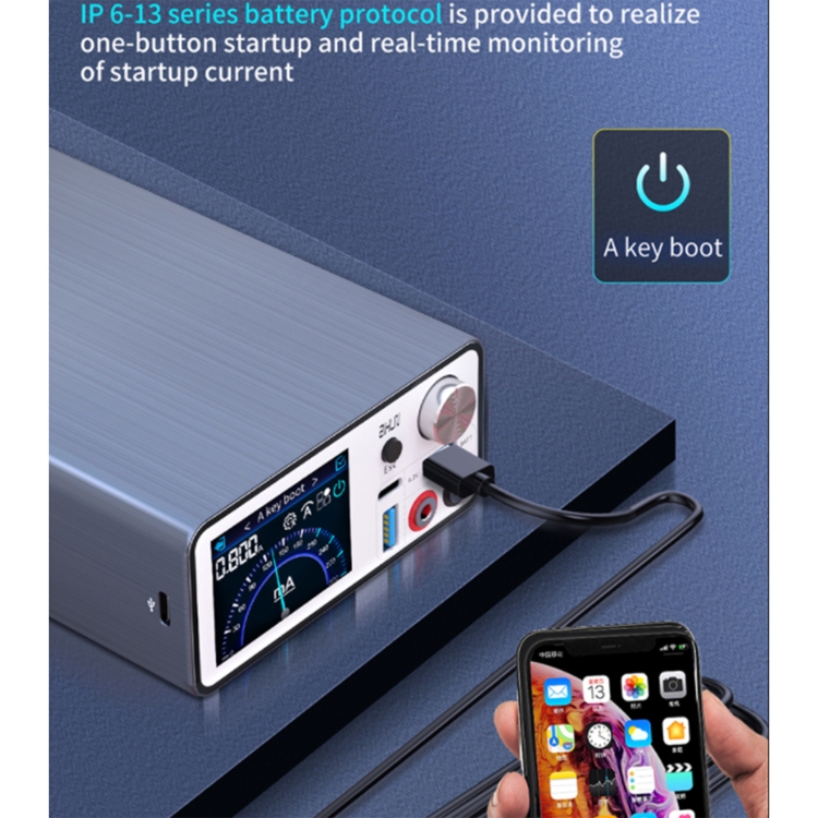 8. Provide for iPhone 6-13 series battery protocol to realize one-key startup and real-time monitoring of startup current