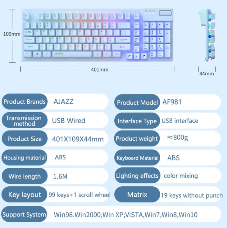 Ajazz AF981 96 Keys Office Gaming Illuminated Wired Keyboard, Cable Length: 1.6m