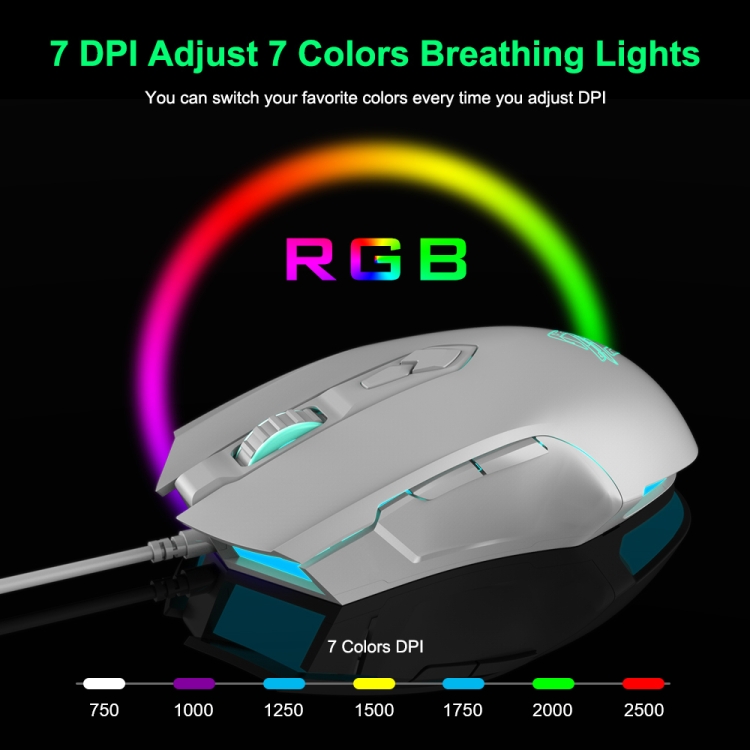 2. DPI switching RGB colorful lighting effect, each DPI adjustment mouse can be adjusted according to your mood, so that the free color is more arbitrary anytime, anywhere