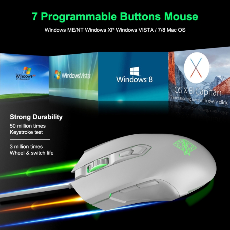 Ajazz AJ52 7 Keys Macro Programming Game USB RGB Wired Computer LOL/CF Mouse