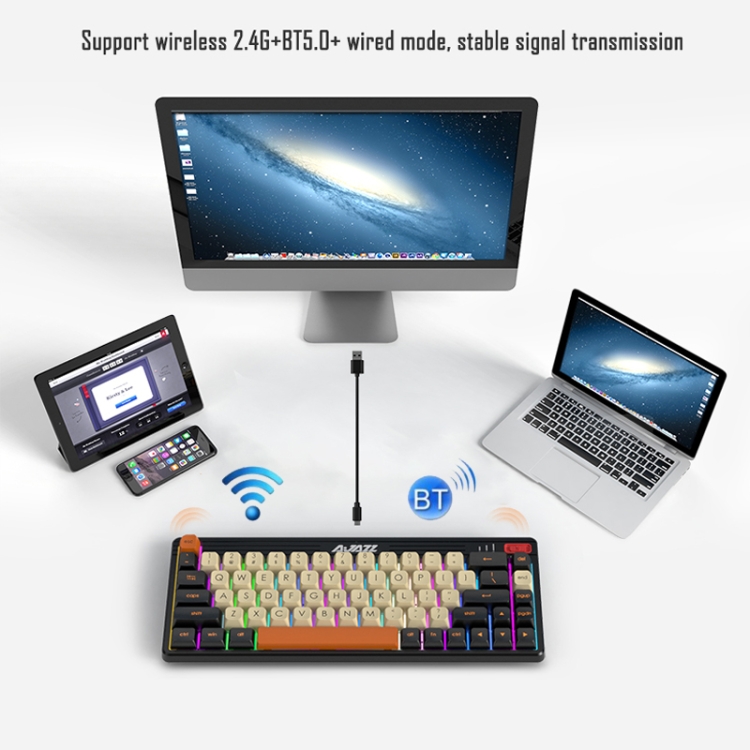 Ajazz K690T 69-key Wireless+Bluetooth+Wired Three-mode Mechanical RGB Gaming Office Keyboard