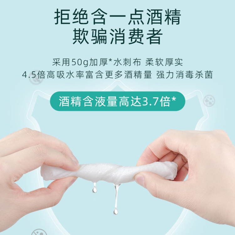 4. 50g thickened spunlace cloth, soft and thick, 4.5 times higher water absorption, rich in more alcohol, strong disinfection and sterilization