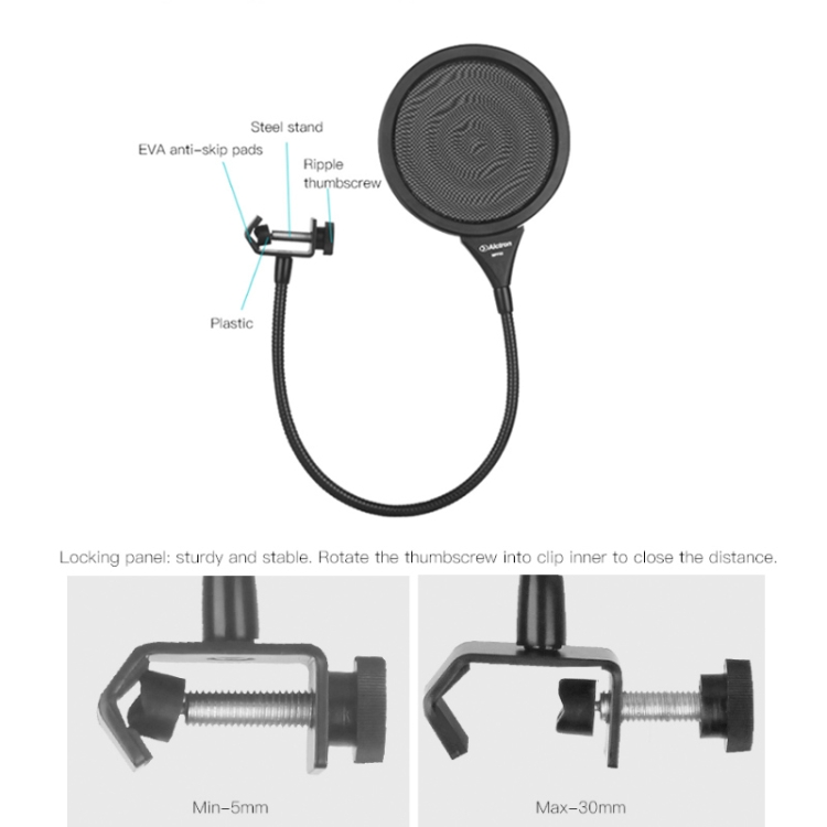 Alctron MPF02 Microphone Pop Filter for Studio Recording Anti-Noise With 450mm Steel Gooseneck