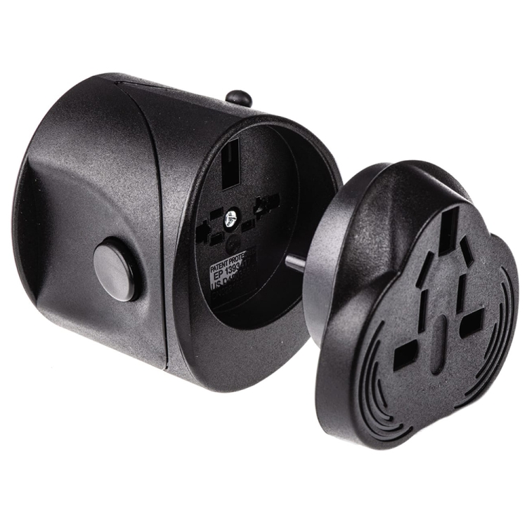 1) This universal adaptor is a compact one piece unit with 4 international adaptors, and provides a child protection safety shutter, power indicator light surge protector. This item with fit the plugs in Europe / UK / USA / China / Japan / Australia / Spain and almost every country in the world