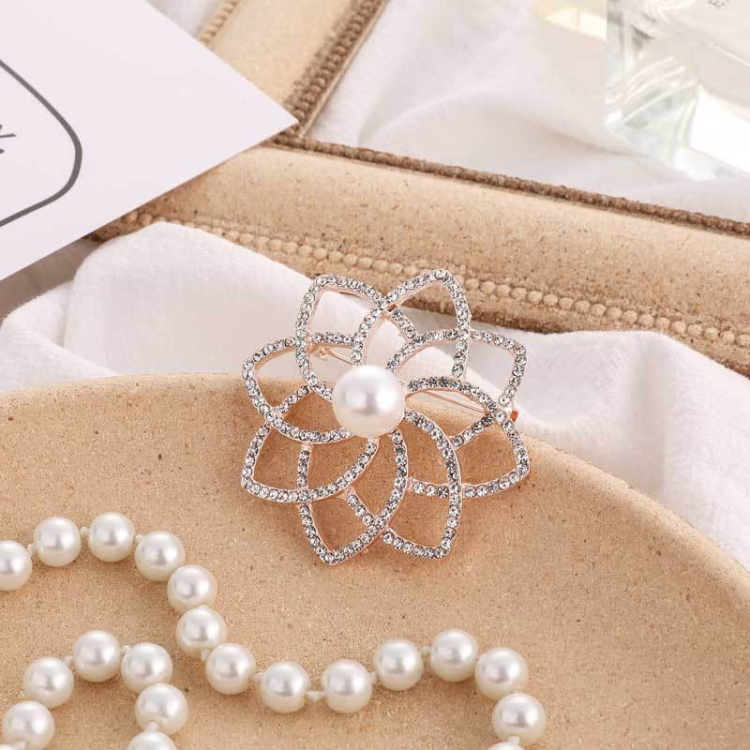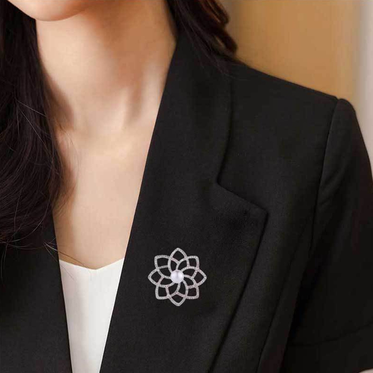 Alloy Diamond Double Flower Brooches Temperament Wild Clothes Pin