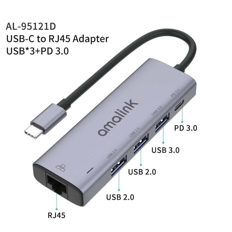 amalink 95121D Type-C / USB-C to RJ45 + 3 Ports USB + PD 3.0 Multi-function HUB